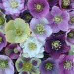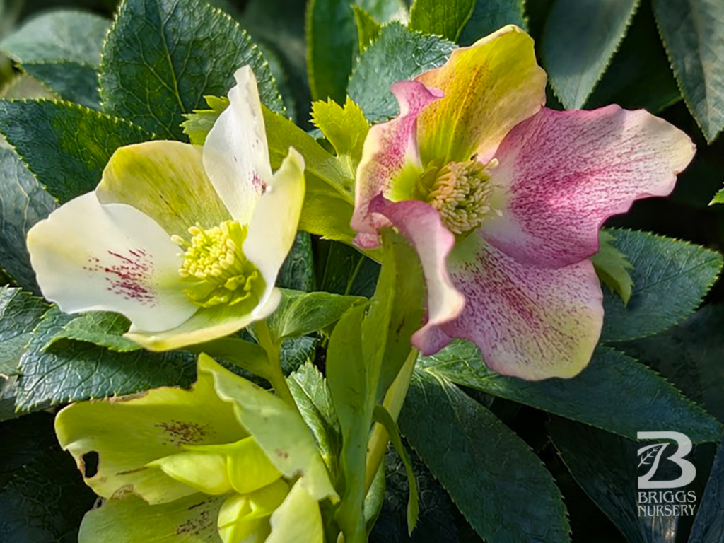 The Royal Heritage⢠Hellebores are a strain of hybrids developed over many years by the noted plantsman, John Elsley. They have long-lasting, cup-shaped flowers in a range of colors that includes shades of purple, pink, green, white, and near black, all with a contrasting center of yellow stamens. Blooms begin in Winter & continue for 2+ months. Leathery, dark green leaves persist well into Winter. Introduced by Briggs Nursery. 1999 Briggs Plant of the Year. 1.5′ x 2′