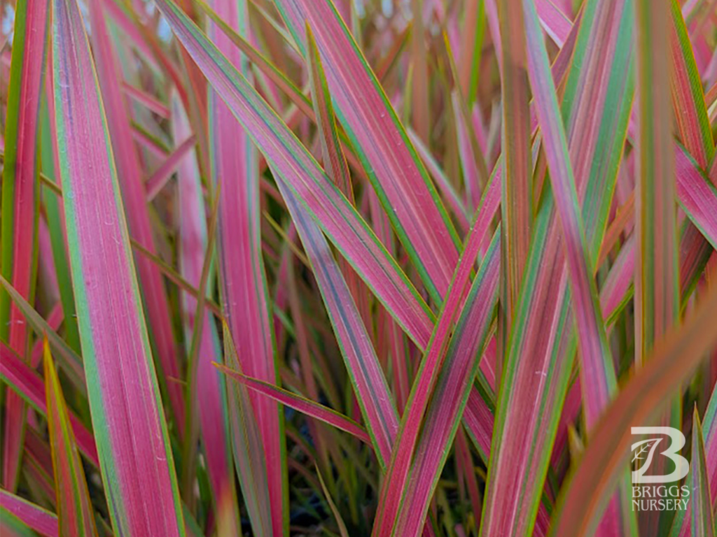 ‘Jester’ grows to about 18 inches tall, with very showy, slightly arching’ 2- 3 feet long, pinkish leaves, having an orange midrib and lime green bands near the margins. Best color in full to partial sun.