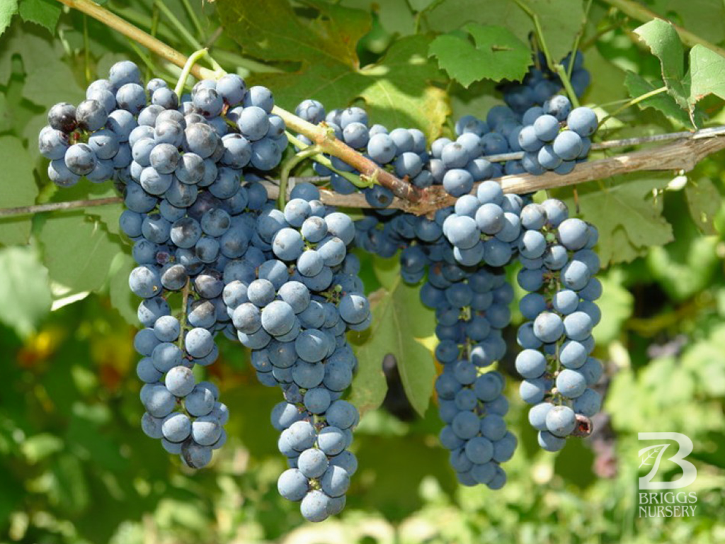 Vitis ‘Glenora’ is a seedless table grape cultivar known for its early ripening, typically maturing in late summer. The grapes are medium-sized, round, and have a deep blue to black skin with a sweet, mild flavor. The flesh is juicy and tender, making it ideal for fresh consumption. Vines are vigorous and productive, exhibiting good disease resistance, particularly to common grape ailments like powdery mildew. They thrive in full sun and well-drained soils, making them suitable for a variety of climates. ‘Glenora’ is best suited to temperate regions of the United States, in USDA Hardiness Zones 5 through 8. This makes it a strong performer in areas such as the Northeast, Mid-Atlantic, Pacific Northwest, and parts of the Midwest and Southeast, where winters are moderately cold and summers are warm but not extreme.